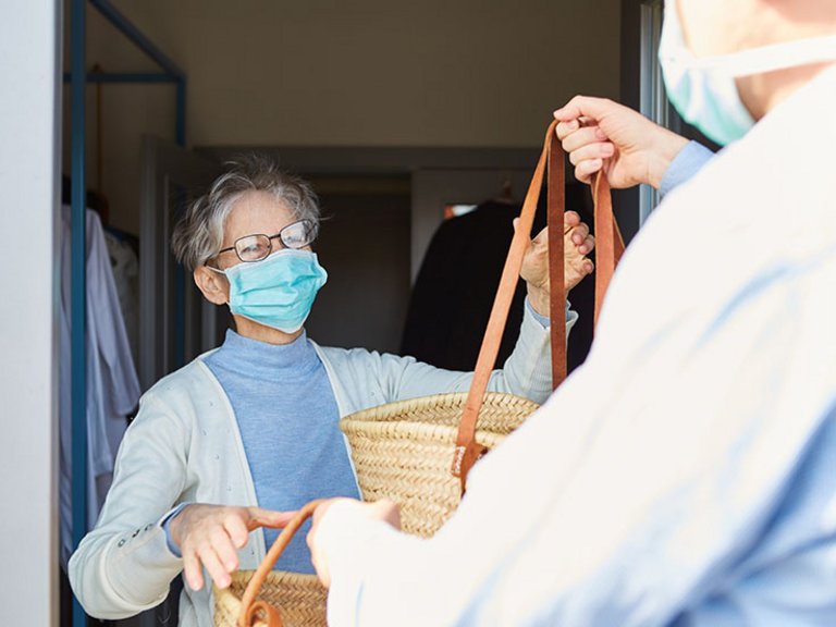 Если продукты вам доставляют на дом, избегайте прямого контакта с курьером. Соблюдайте достаточную дистанцию, избегайте приветствий, связанных с физическим контактом. Извлеките продукты из упаковки и выбросьте упаковку. Перед тем как прикасаться к еде, мойте руки водой и мылом в течение минимум 20 секунд.